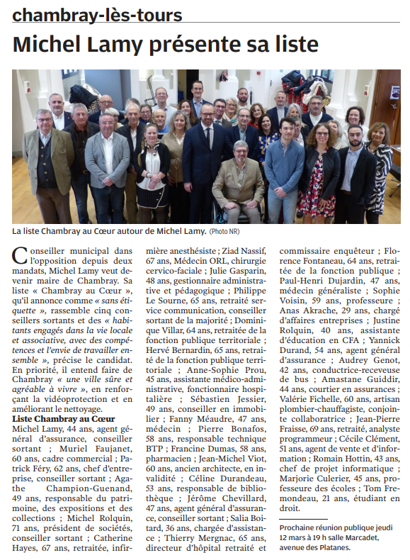 Chambray-lès-Tours : Michel Lamy présente sa liste